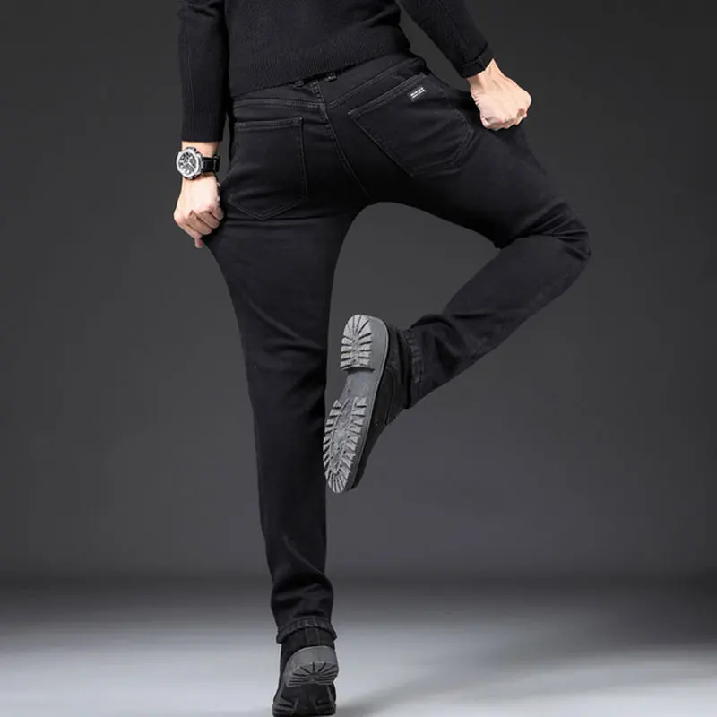 | Fashion Classical Men Jeans Black Color Elastic Casual Business Pants Vintage Designer Wild Simple Slim Jeans Men Pencil Pants |